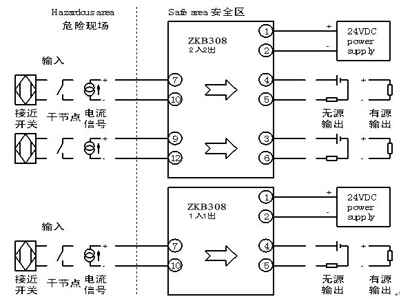 ZKB308檢測端開關(guān)量隔離安全柵